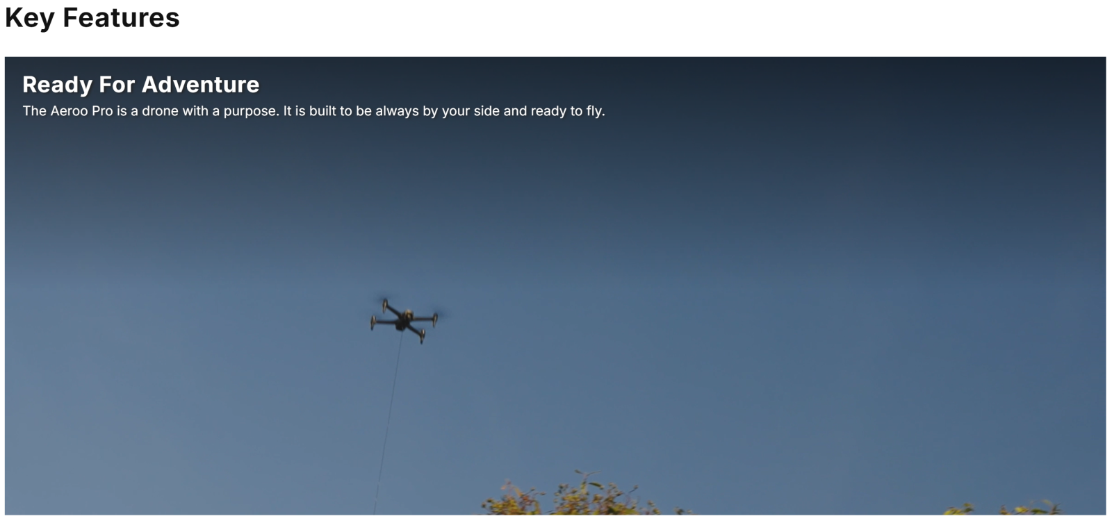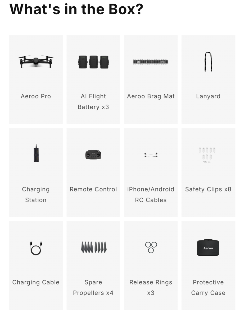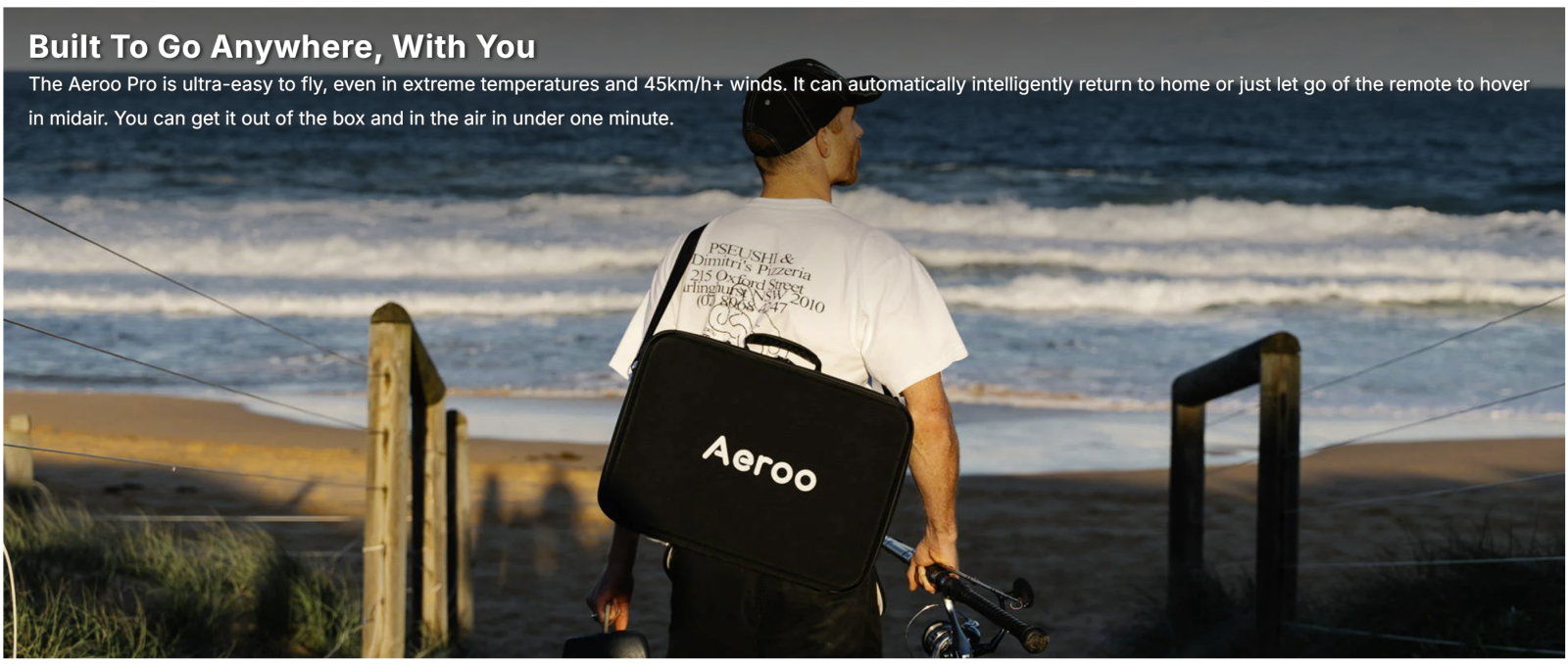 Above all, the Aeroo Pro is easy to fly. Take off, fly out, return home and land, all at the press of a single button. Let go of the remote and the drone will hover on the spot, even in high winds. All inside a compact carry case to easily take with you on any adventure, ready to take off at a moment's notice.