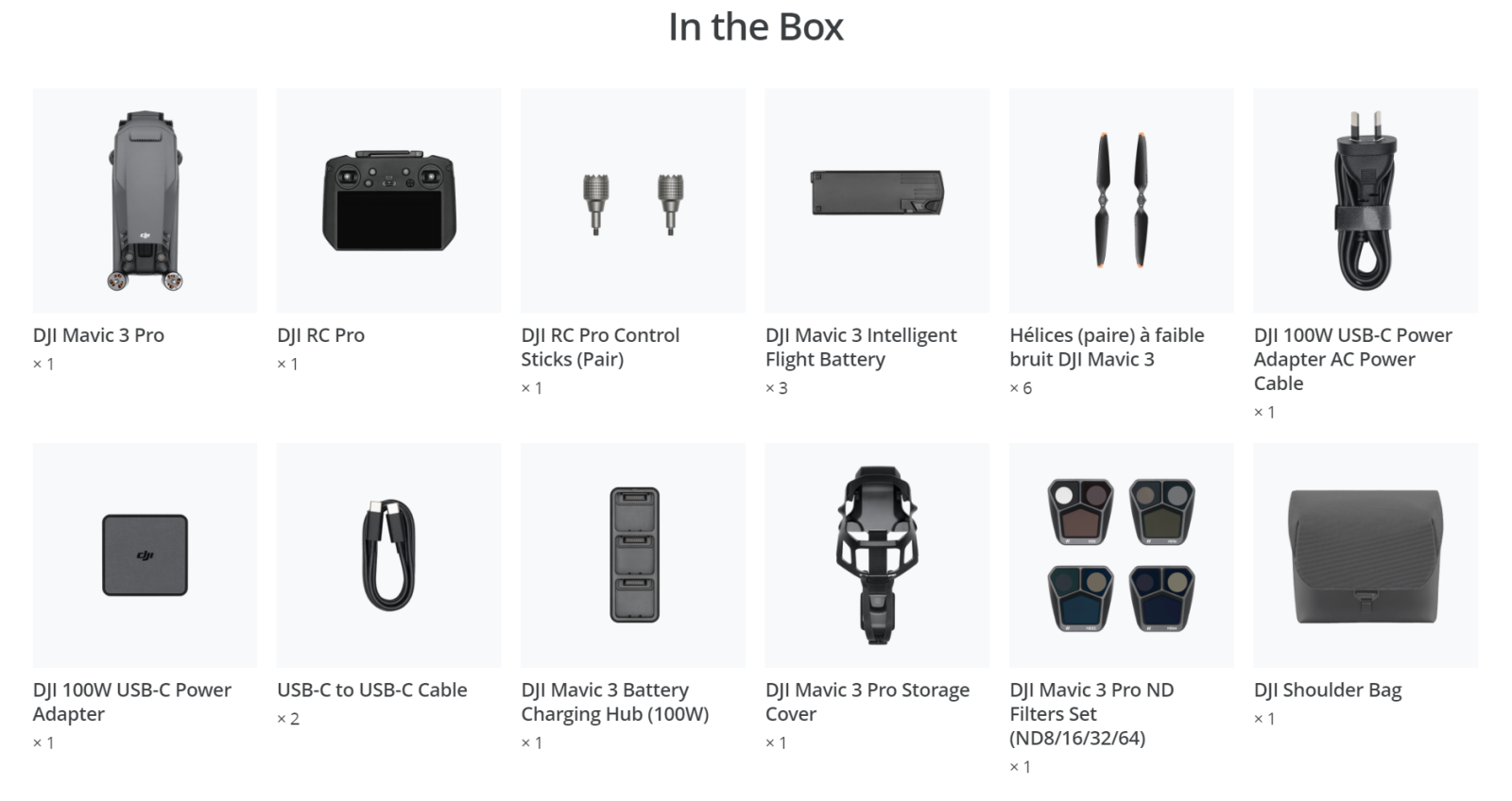 The DJI Mavic 3 Pro Fly More Combo (DJI RC) includes a DJI RC Pro with 1080p high-bright screen, three batteries, a battery charging hub, ND filter set and more.