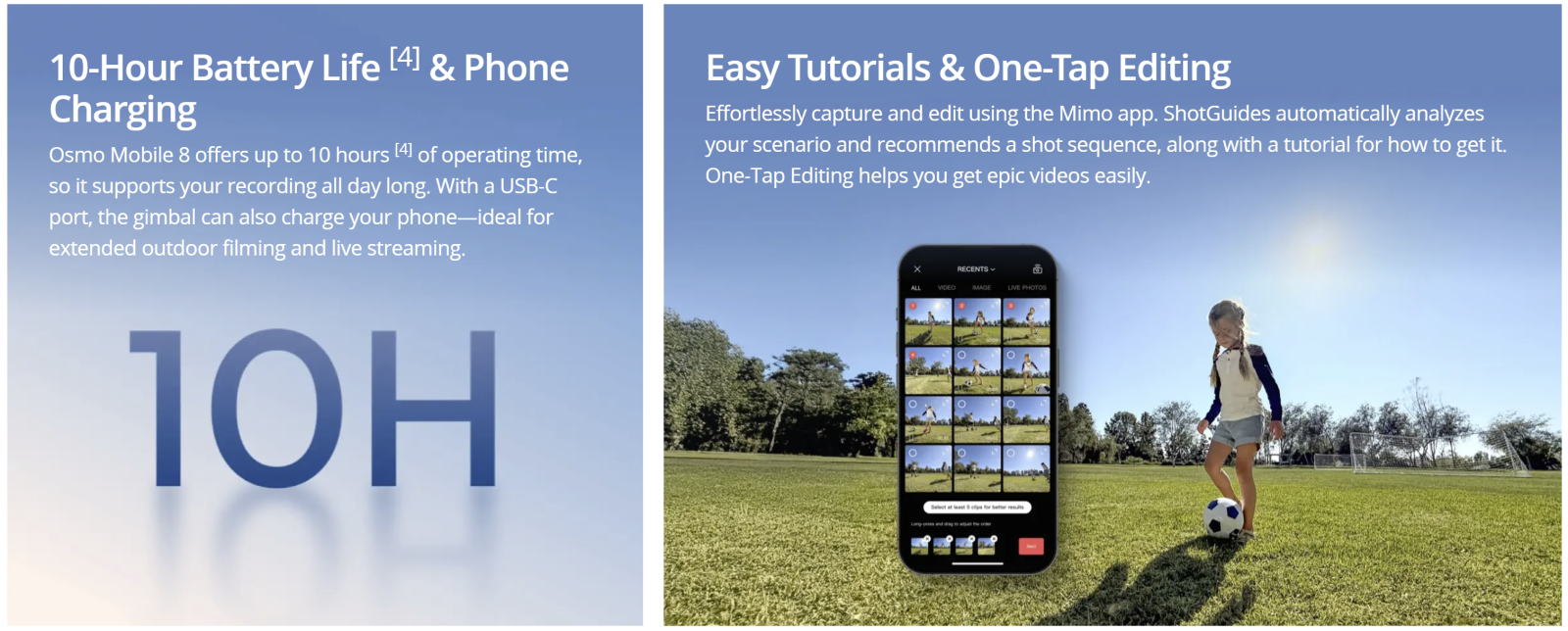 Osmo Mobile 8 has been upgraded in several areas, including the following: