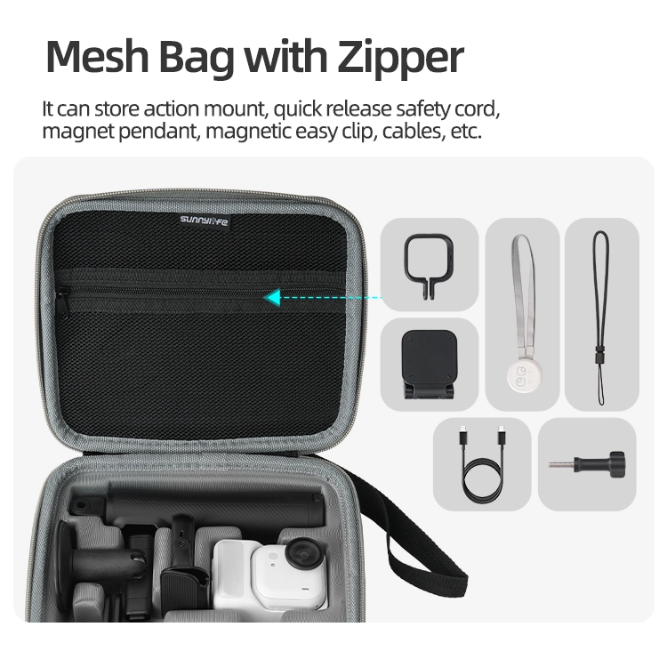 - The multifunctional bundle bag can hold Insta360 GO Ultra, mini 2-in-1 tripod 2.0, pivot stand, toddler titan hat clip, quick release mount, flexi strap mount, backpack clip, and accessories like action mount, quick release safety cord, magnet pendant, magnetic easy clip, cables, etc.
