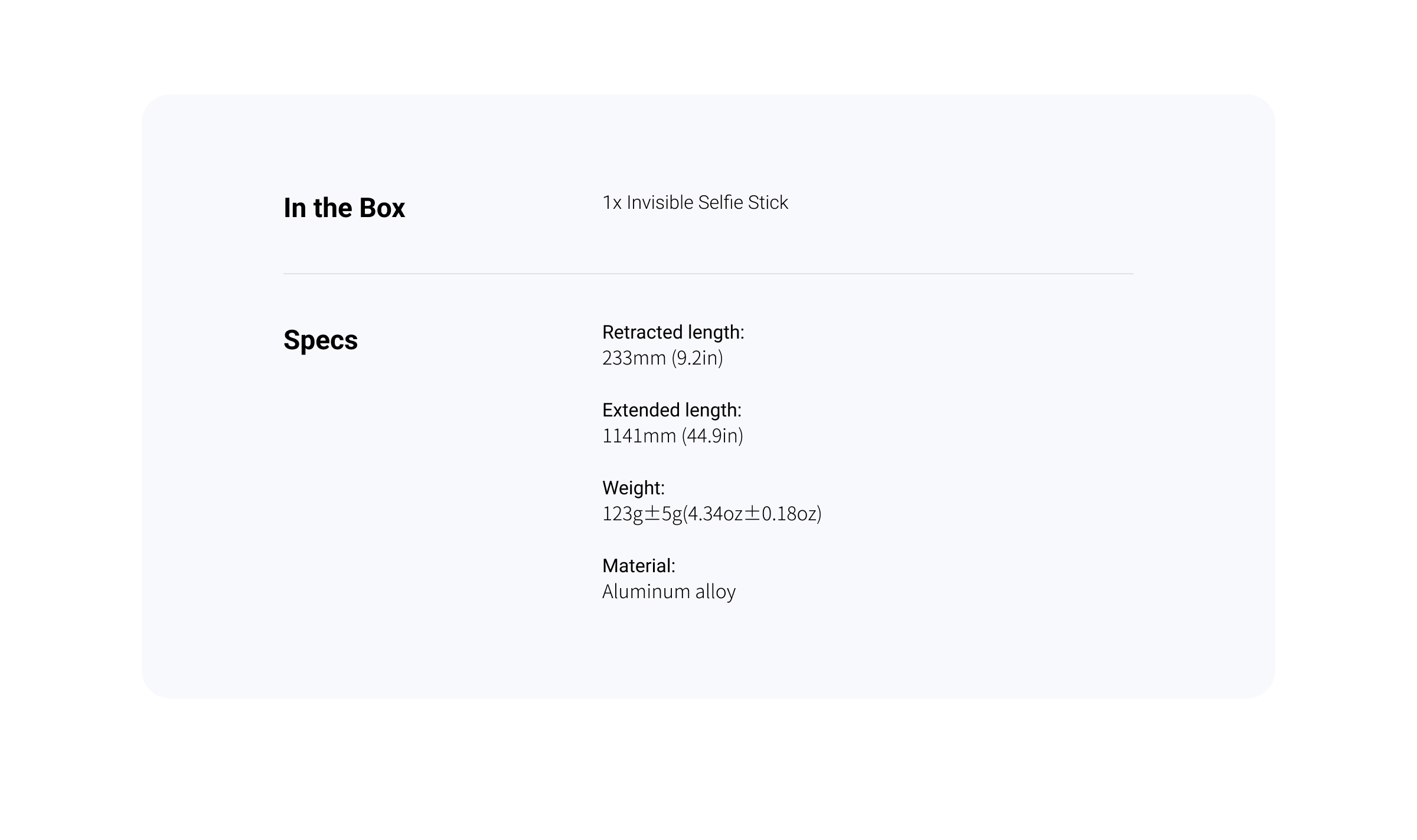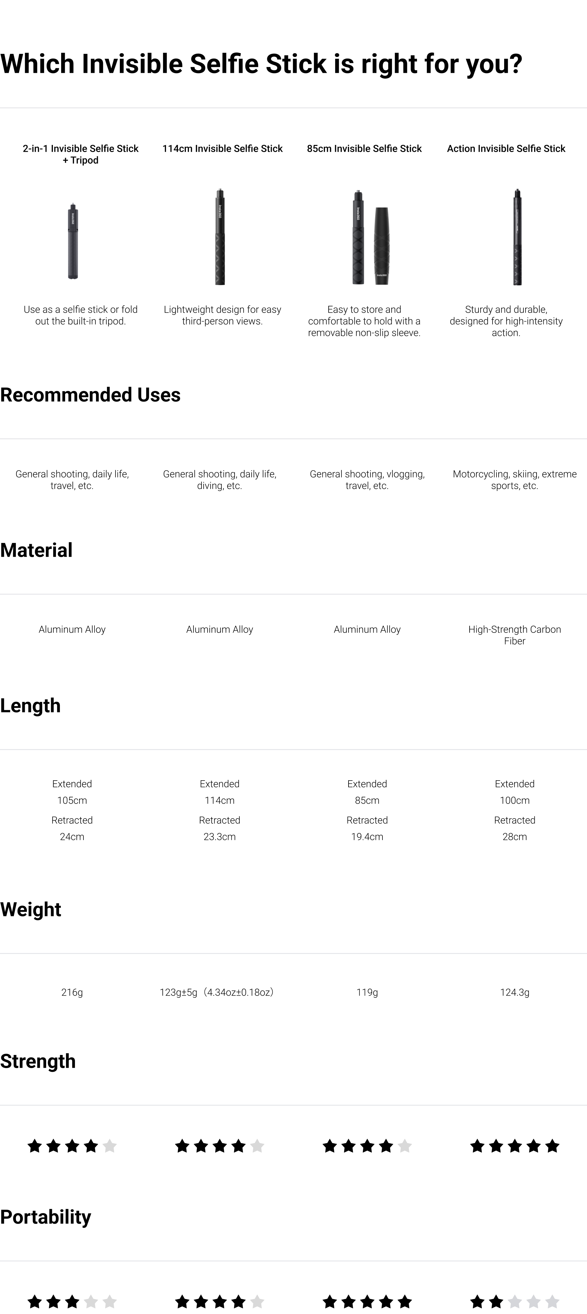 - A lightweight selfie stick perfect for capturing daily life, but not designed for high-speed adventures. For high-intensity sports and action, we recommend the Action Invisible Selfie Stick.
