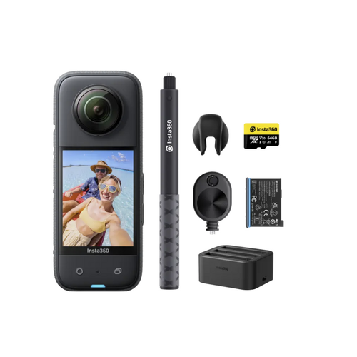 - Ultimate Kit includes 1x Insta360 X3, 1x 114cm Invisible Selfie Stick, 1x 64GB microSD Card, 1x Bullet Time Cord, 1x additional Battery, 1x Fast Charge Hub and 1x Lens Cap.