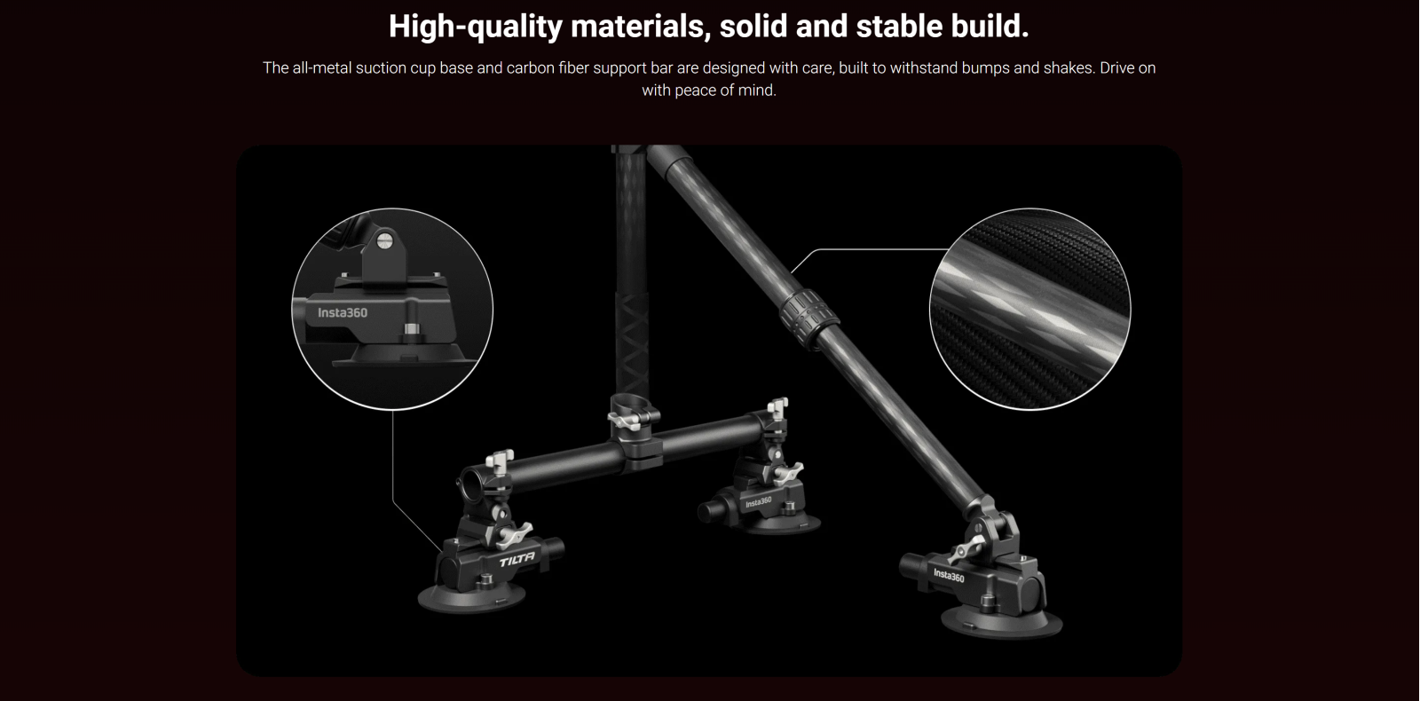 - This car Triple Suction Cup Car Mount can only be used with the Insta360 Action Invisible Selfie Stick - available to purchase separately (not included with the suction cup car mount), do not use with other selfie sticks.