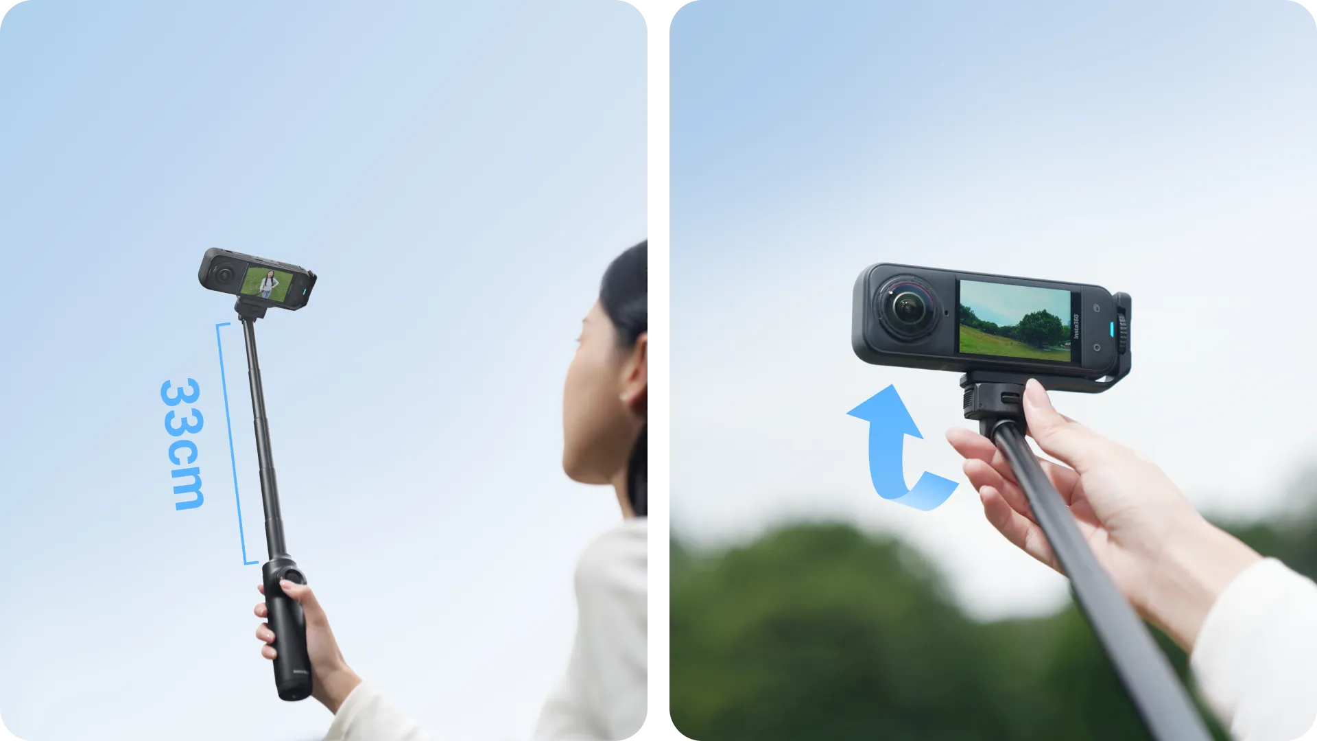 Extend the selfie stick up to 13in (33cm) and tilt it for creative angles, or hold it straight for casual moments.