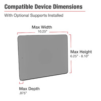 The RAM-B-101-C-UN9U consists of a long length B size 1" double socket arm and two 2.5" diameter round ball bases that contain the universal AMPS hole pattern, as well as the RAM® X-Grip® universal holder for 9"-11" tablets. The RAM® X-Grip® features an 'X' design that expands and contracts to provide a perfect fit for your device – even if it's in a case. Included are easy access grip knobs located on the back of the cradle for quick release of your tablet. RAM® ball and socket technology allows for near-infinite adjustability to achieve the ideal viewing angle – while also extending the life of your phone by providing shock and vibration damping. This version of the RAM® X-Grip® holder is compatible with tablets that will fit the dimensions listed below. It is important to verify the dimensions of device with its case, sleeve, or skin when determining the overall size.