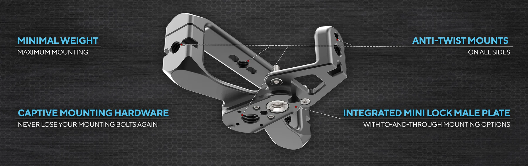 - Integrated KONDOR BLUE Mini Lock Male Plate for quick-release mounting options