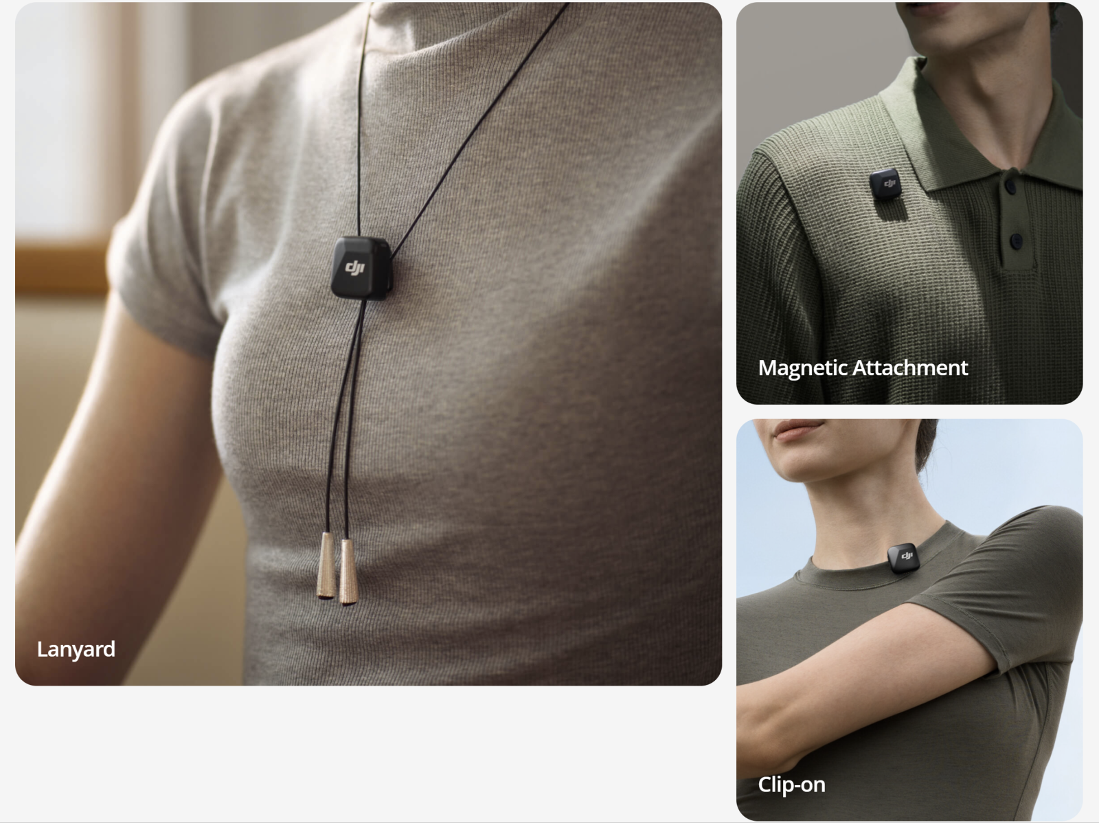 The DJI Mic Mini Transmitter is small and ultralight, weighing only 10 g, [5] making it comfortable to wear and discreet. With multiple wearing options like magnetic attachment and clip-on, it won't weigh down your collar or flip outward, even on thin T-shirts, ensuring a more aesthetically pleasing on-camera appearance.
