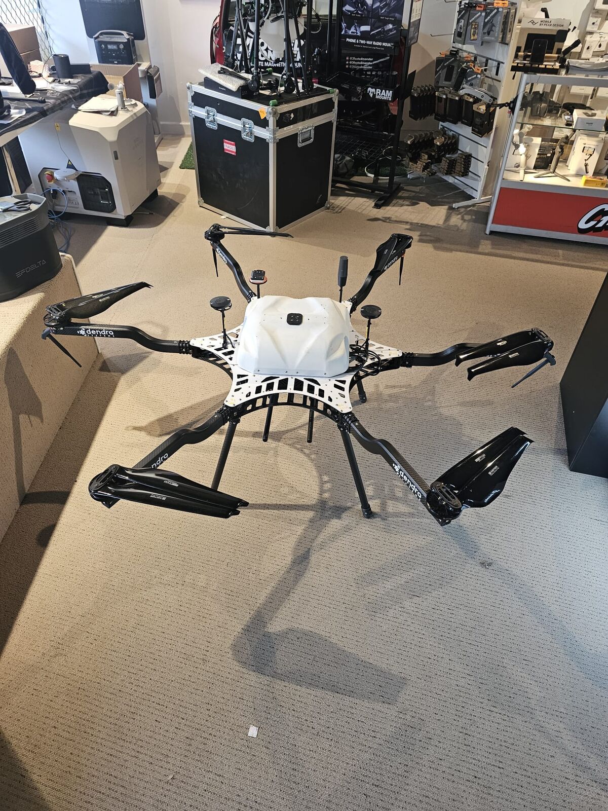 This is a second hand Harris Aerial H6 Electric UAV. It comes with the drone, Herelink Remote, custom battery charging station and 16 batteries. Also includes two hard cases - one for the drone and one with spare parts.