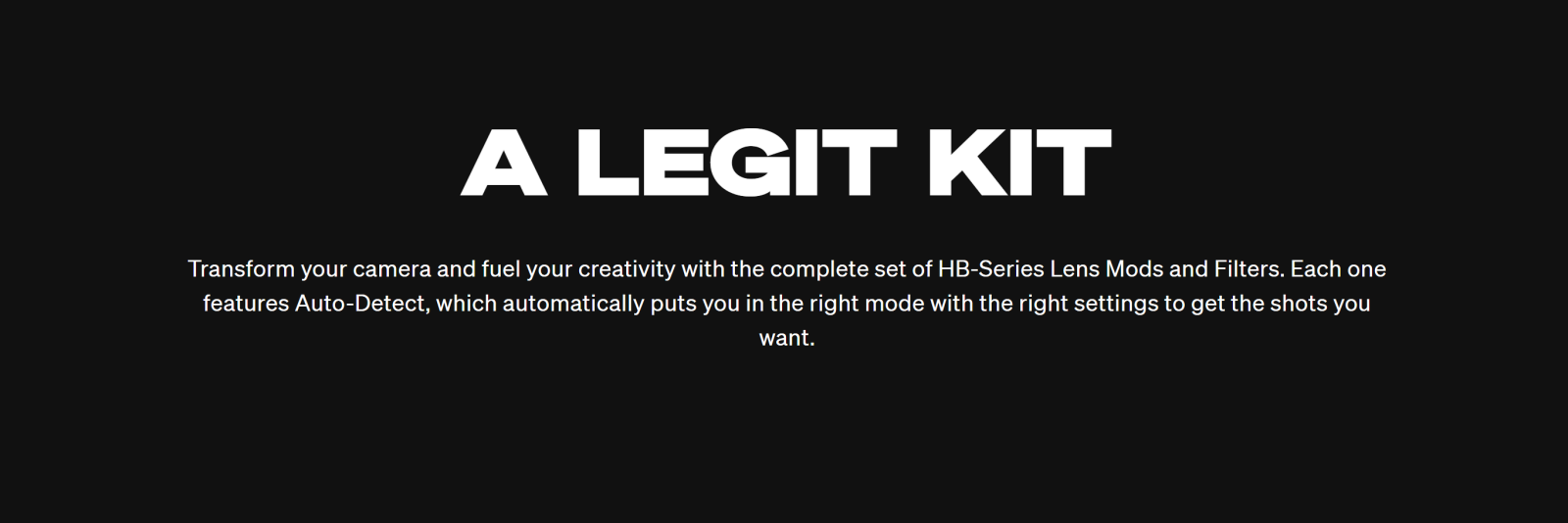 This premium kit includes the complete set of HB-Series Lens Mods and Filters. It features the Ultra Wide Lens Mod for the ultimate in immersive POV shots, the Macro Lens Mod for incredible detailed close-up shots, and Anamorphic Lens Mod for pro-level cinematic shots in the 21:9 aspect ratio used in feature films and 4 Neutral Density Filters that automatically add motion blur to your footage. And HERO13 Black automatically recognizes a lens when attached, and will switch into the right mode with the right settings to get the shots you want.