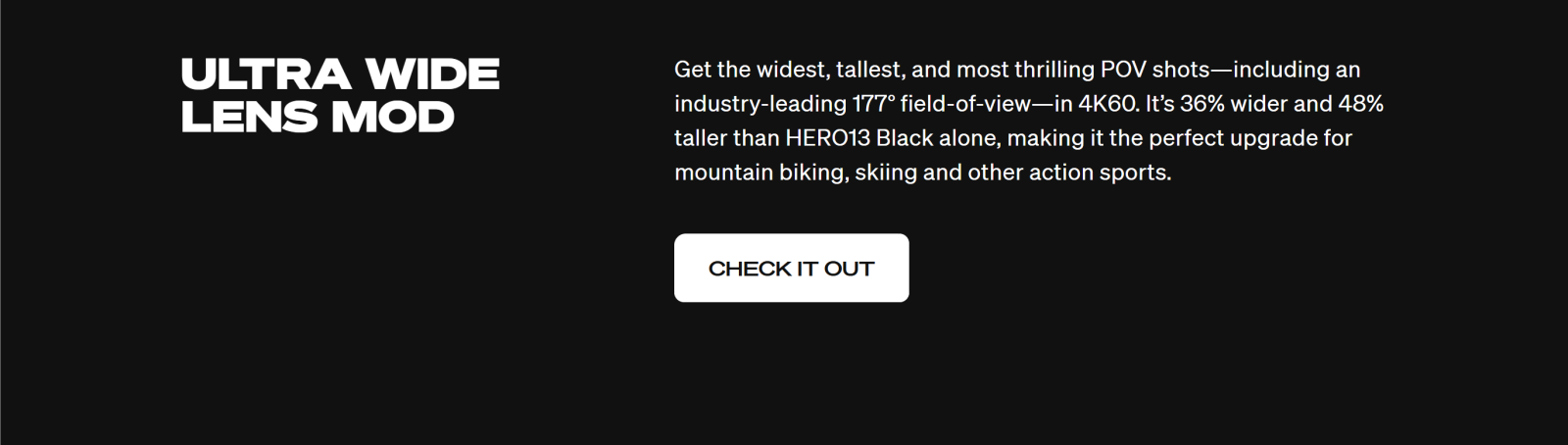 - Ultra Wide Lens Mod boosts field of view up to 177° (36% wider and 48% taller)¹