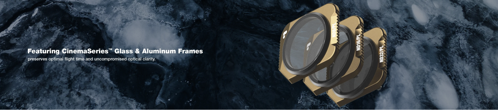 The Vivid Collection for the Mavic 3 Classic combines two filter effects (ND + Polarization) together into one single glass element. Included in the set are ND8/PL, ND16/PL, ND32/PL filters to reduce shutter speed and cut glare in bright and reflective conditions to produce stunningly saturated colors. To preserve maximum flight time and ensure gimbal optimization each filter features a lightweight aerospace-aluminum frame. With polarization indicators etched onto the frame, these filters provide pinpoint adjustments to achieve your desired light polarization.