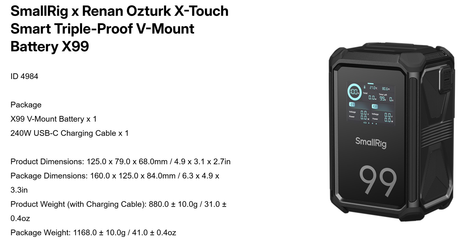 SmallRig X99 V Mount Battery: Smart Triple-Proof (Waterproof/Drop-Resistant/Dustproof) Battery 4984