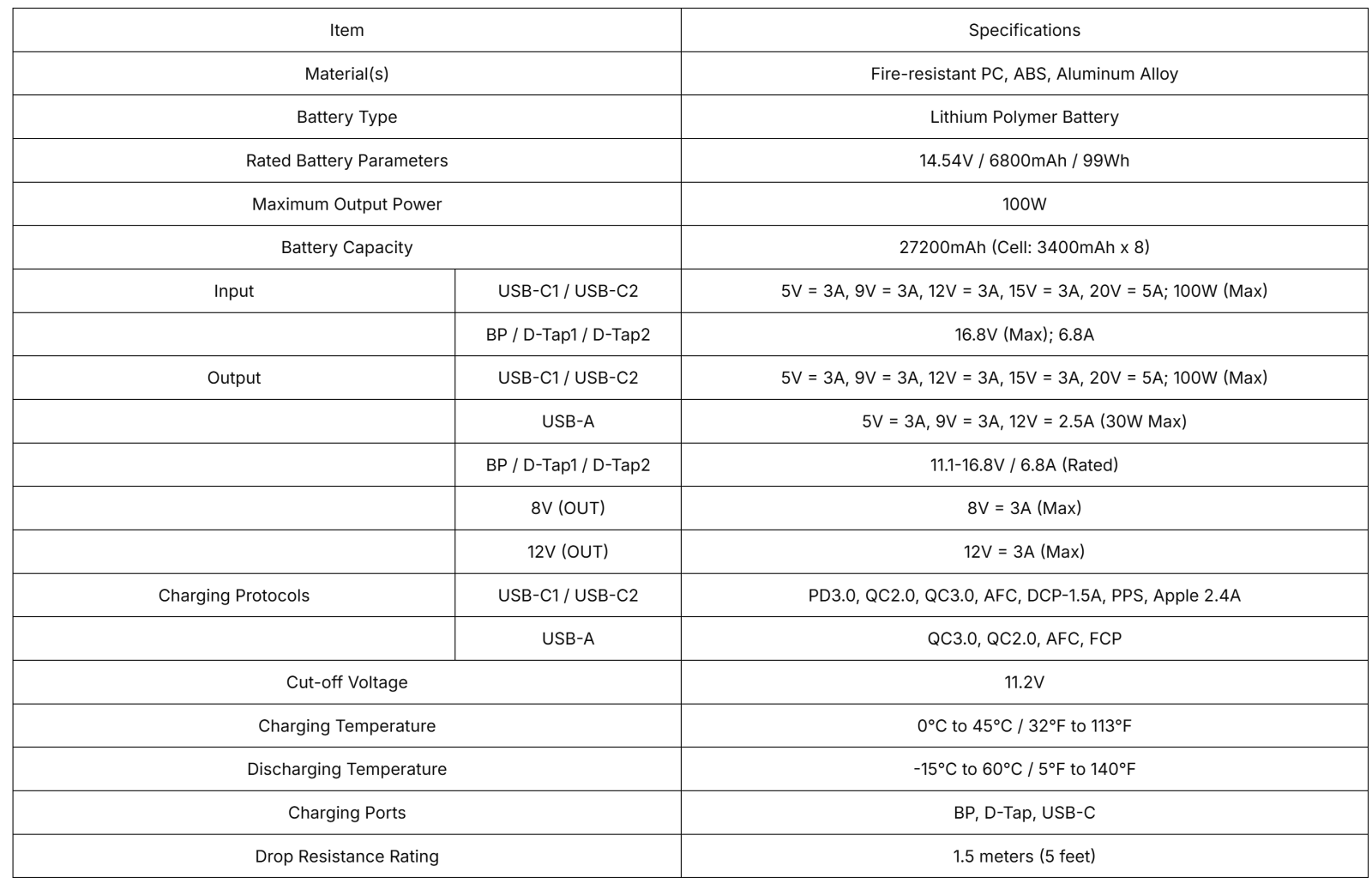 - Multi-Port Power Hub: 2 D-Tap, 2 100W USB-C PD, 1 BP,1 USB-A, and 2 DC ports, enables -10°C low-temp charging, 2-hour fast full charge